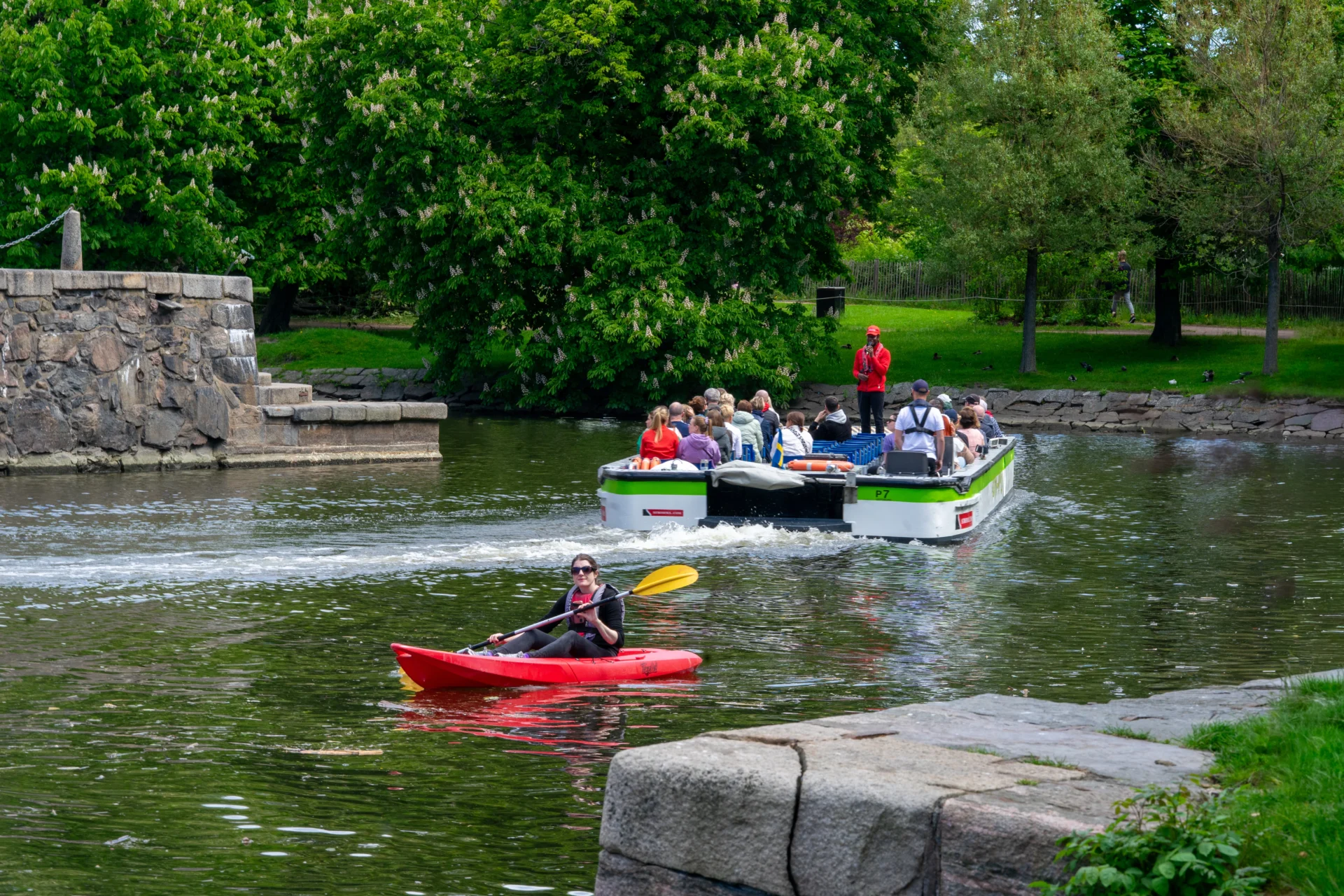 Turen startar vid Bältespännarparken, precis vid entrén till Trädgårdsföreningen. Härifrån paddlar du längs kanalen som anlades på 1600-talet som en del av stadens försvar och fortfarande omringar den gamla stadskärnan.