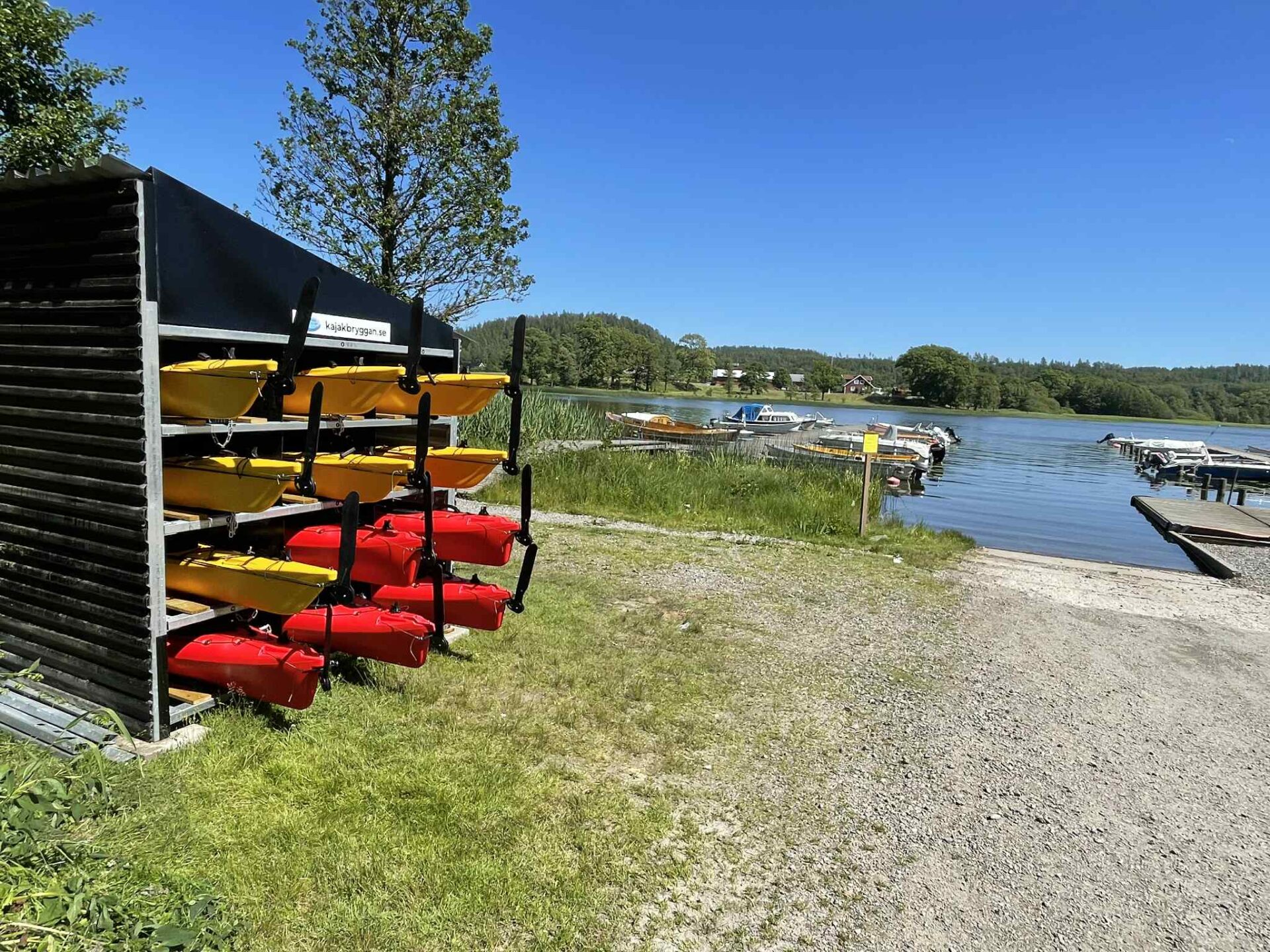 Kajakbryggan, in collaboration with Gräfsnäs Castle Park and Alingsås Municipality, has established an unmanned rental station for kayaks and pedal boats.
